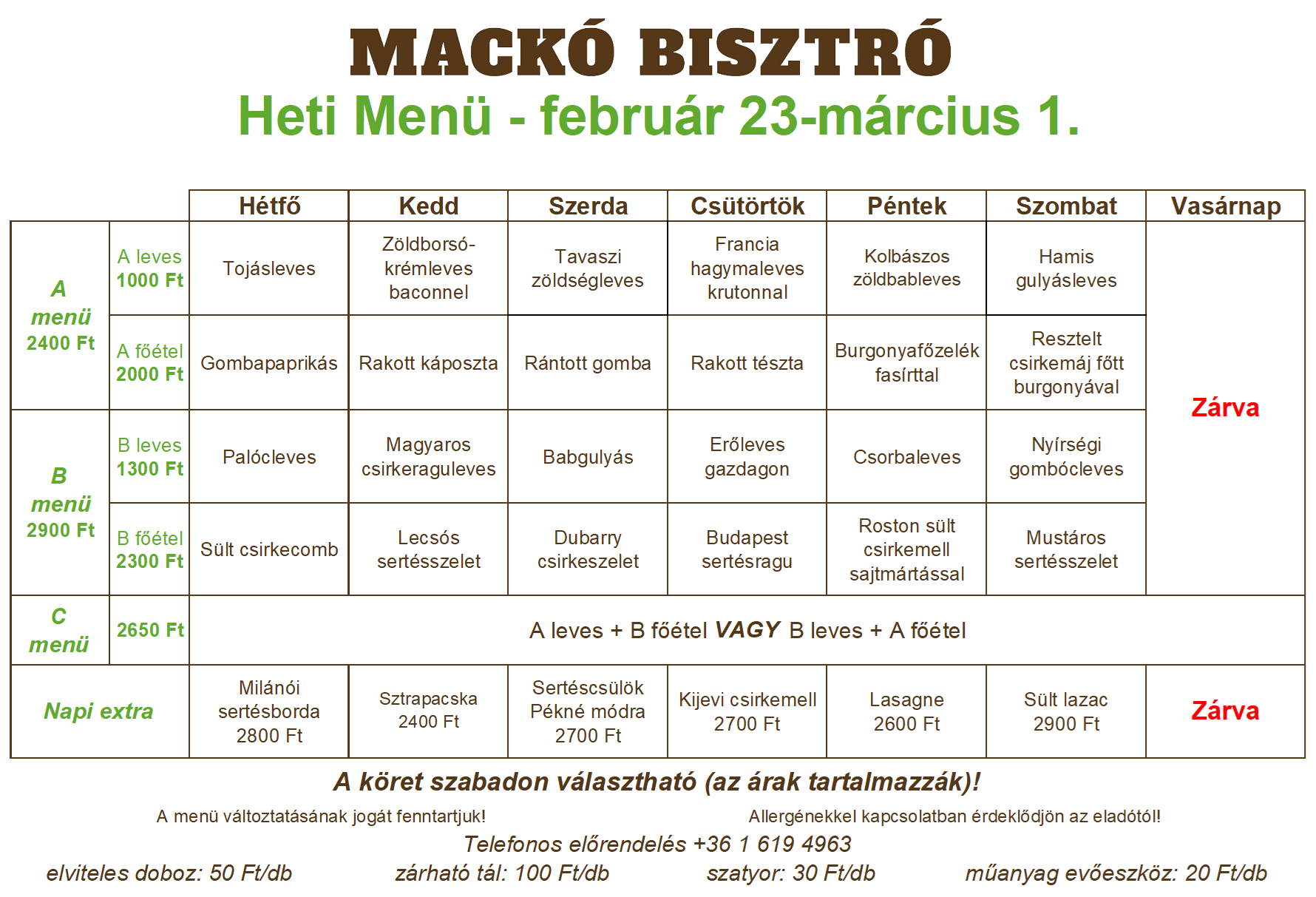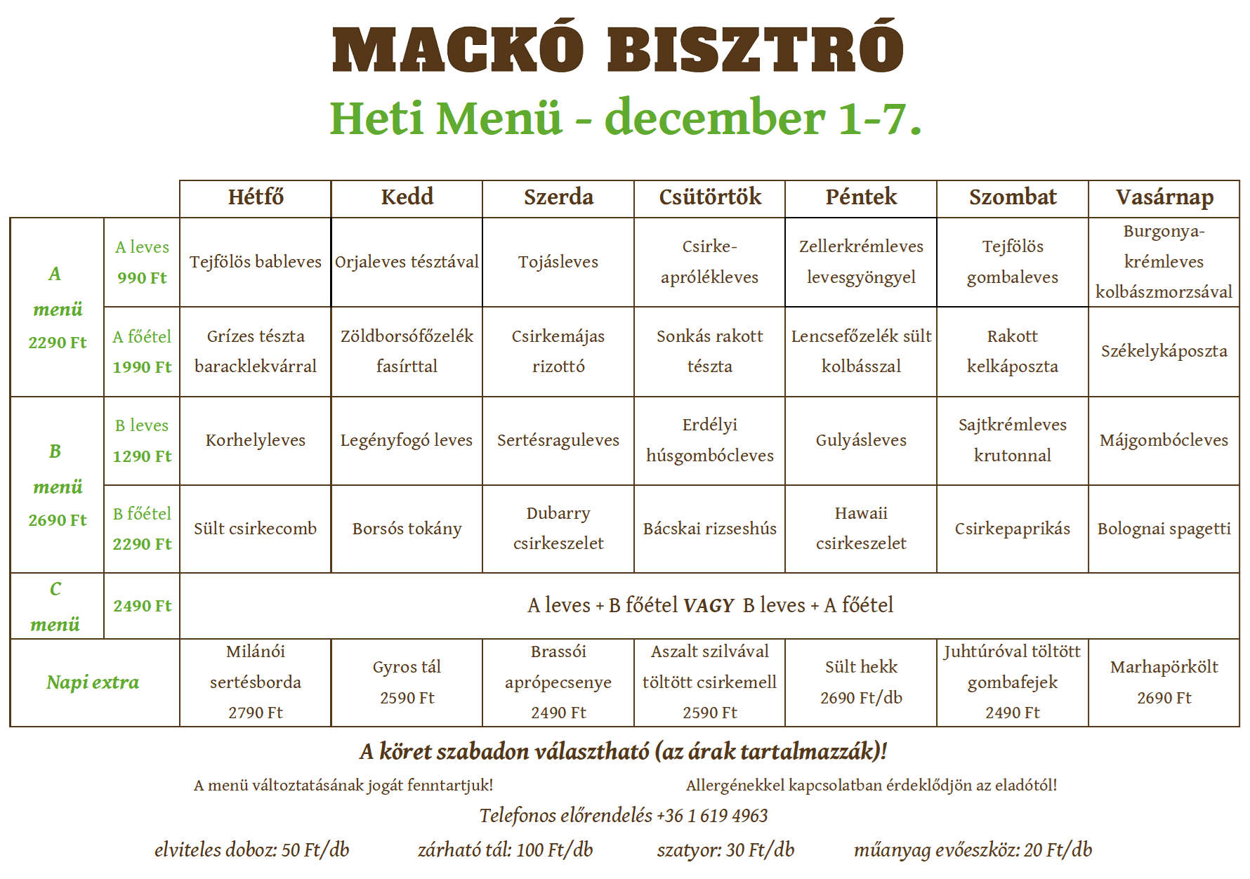 Üdvözlünk honlapunkon. Szeretettel várjuk a Mackó Bisztróban a Füvészkert mellett. A magyaros konyha ízletes ételein túl a nemzetközi ételeket is elkészítjük egészségesen, háziasan. Hozd el barátaidat és családtagjaidat, hogy ízletes ételeinket élvezhessék. Édes desszertjeinket is élvezhetik. Frissítő sör, bor, kávé és tea is rendelkezésre áll az étkezés kiegészítésére.